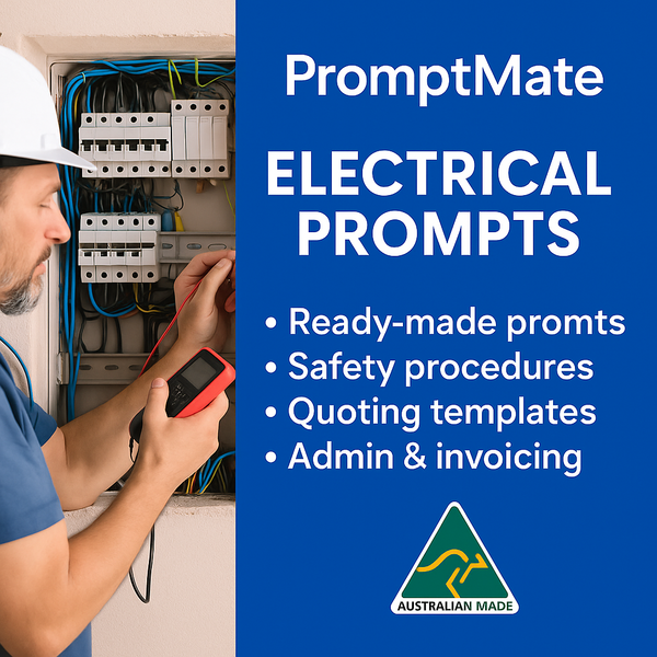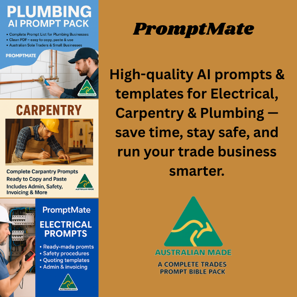 PromptMate is Australia’s first trade-specific prompt library, built for carpenters, plumbers, and electricians who want to save time and get professional results — fast.